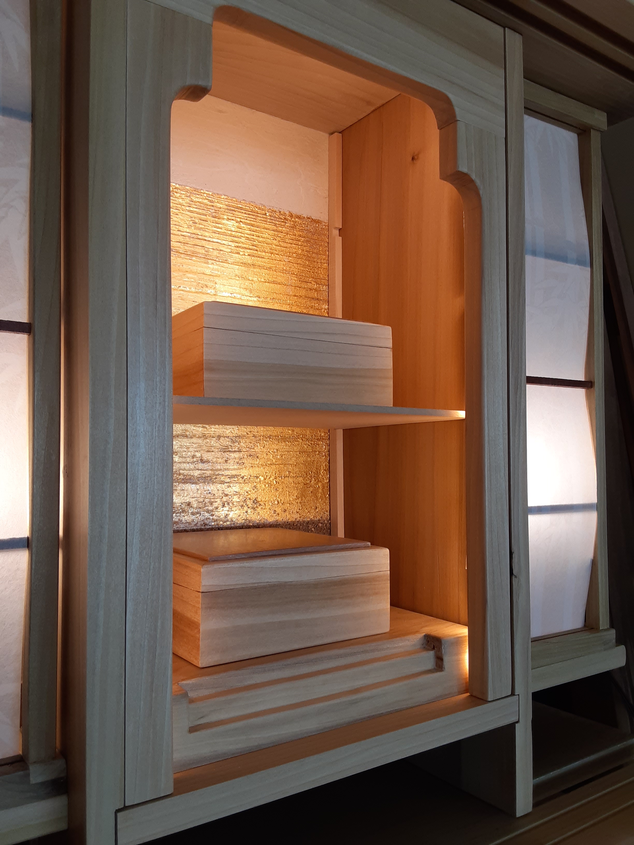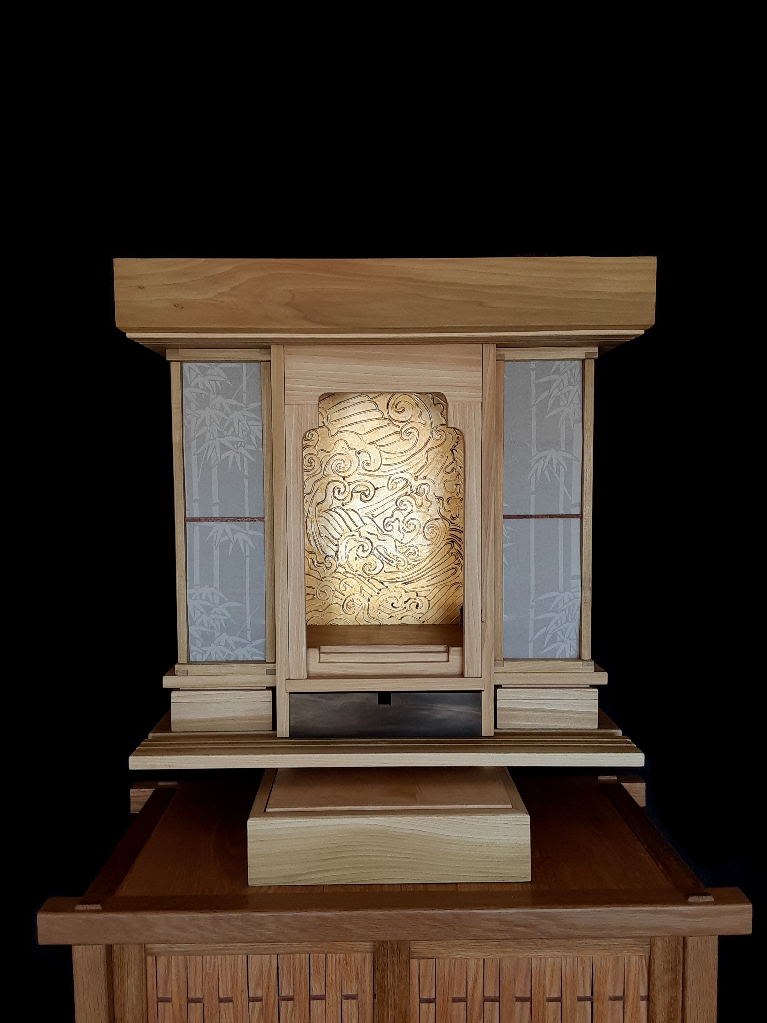 Tags: altar, andon, architecture, art, Artist, arts and crafts, asian inspired, buddhism, butsudan, cabinet, cabinetmaker, cabinetry, carpentry, chanting, craftsman, craftsmanship, creativity, curio cabinet, custom butsudan, custom furniture, customfurniture, display cabinet, entertainment cabinet, fine woodworking, finefurniture, finewoodworking, folkart, furniture, furnituredesign, gohonzon, Gold leaf, Gongyo, handmade, Handmade butsudan, japanese woodworking, japanesecarpentry, japanesewoodworking, joinery, kumiko, lamp, lantern, light, lumiere, menuisier, mortise and tenon, namyohorengekyo, Sashimino, shibui, shinto, shokunin, tansu, temple, wood working, woodworking, zen